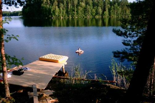 Nach der Sauna kann man dann problemlos in die kühlen Fluten des klaren Sees eintauchen um sich abzukühlen.